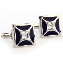 Квадратные запонки с черной эмалью и белым квадратным кристаллом