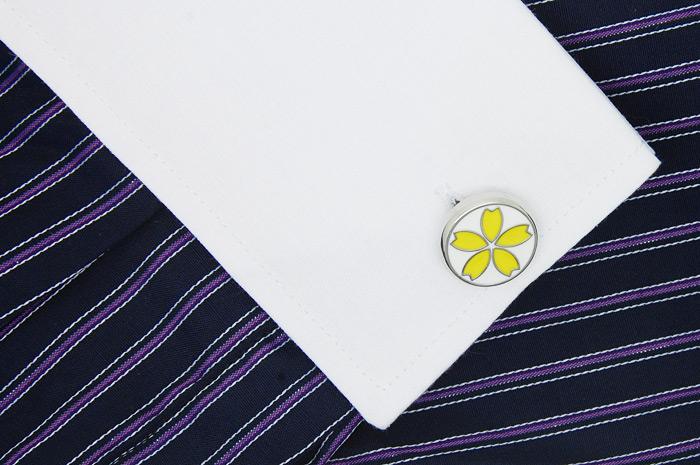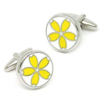 Запонки круглой формы с цветком из желтой эмали в центре. Оригинальный дизайн и приятная цена.