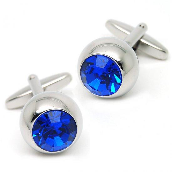 Классические запонки с синим кристаллом в центре. Отличный подарок для любого мужчины.