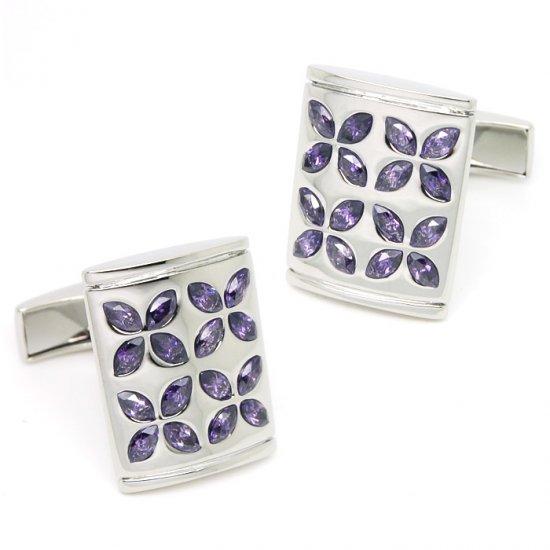 Оригинальные запонки с сиреневыми кристаллами в виде лепестков. Отличный подарок для любого мужчины.