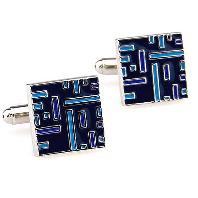 Квадратные запонки с узором из синей и голубой эмали. Оригинальный дизайн и приятная цена.