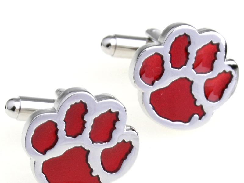 Стильные и необычные запонки в виде лапы в красном цвете.