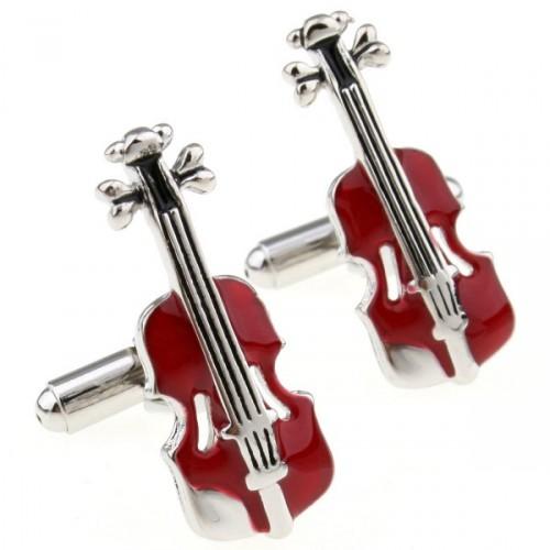 Стильные запонки для любителя классической струнной музыки. Запонки из бижутерного сплава с коричневой эмалью.