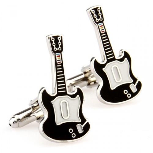 Запонки в виде электрогитар. Черная и белая эмаль.